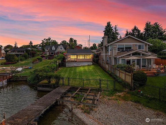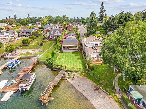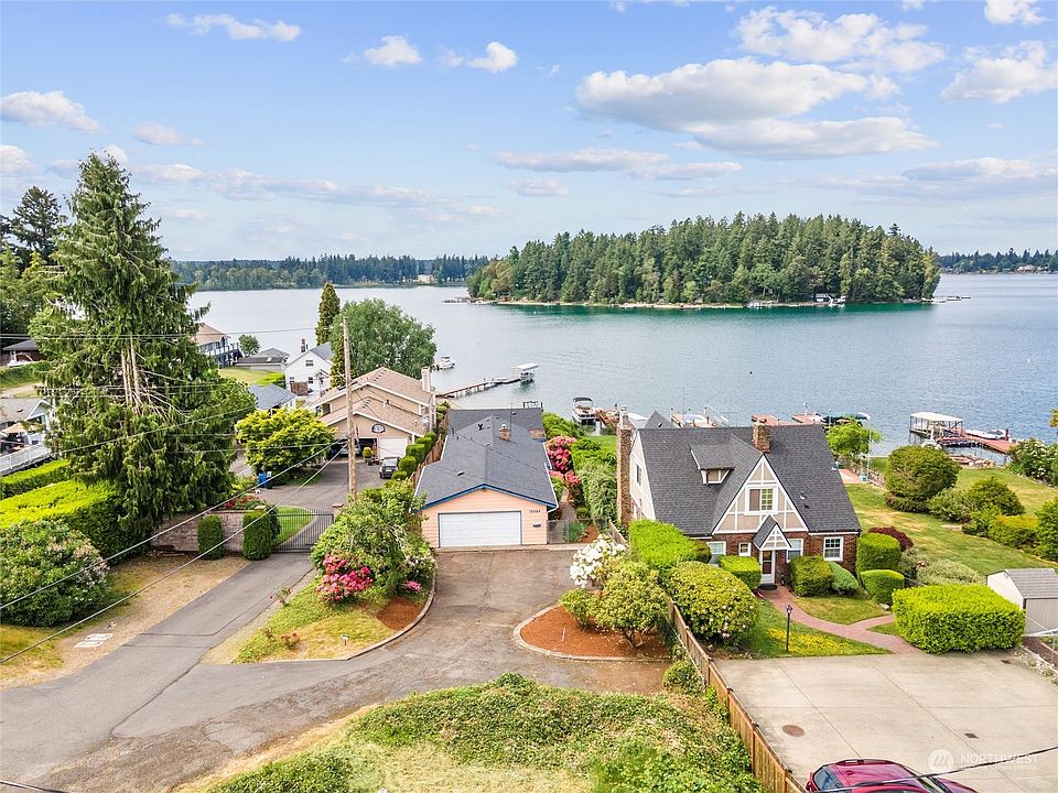 WATERFRONT!!! Hard to find 1 Story on American Lake with 43 ft of your very own WATERFRONT! Gorgeous VIEWS from your Viewing Deck as well as from the Viewing Room. HUGE private yard with room for you to create your dreams! Home is ready for you to make it yours. Kitchen is large with lots of storage and an oversized island as well as room for a large table. Nice sized bedrooms with a lovely living room space cozied up with a beautiful brick fireplace. Oversized garage with shop space. Very large driveway with lots of additional parking. This house is a gem! Come see and enjoy the view!