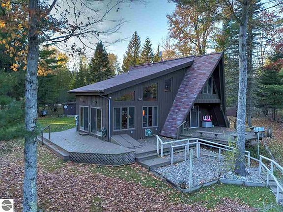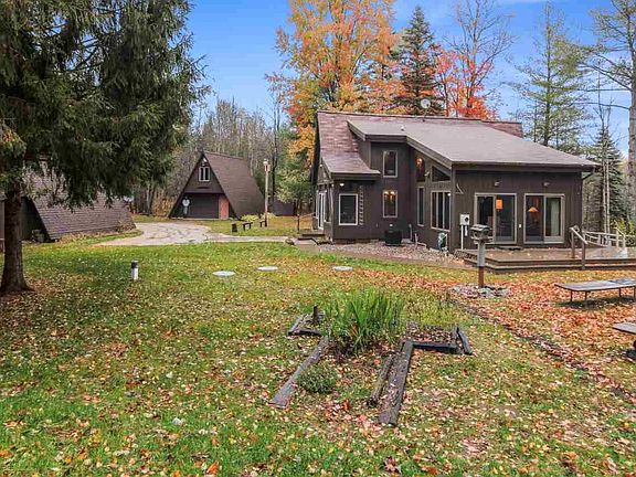 Enjoy the peace and serenity of life on the Betsie River in this artfully crafted, custom built, Betsie River home. Sip your morning cup of coffee from your deck while soaking in the sights and sounds of life on the Betsie. Or unwind in the great room with a gas stove and views of the river and nature from all windows. This four-season cabin features two floors of living space with a great loft area for sleeping and a work area/office overlooking the river. Store all your toys in the 17x20 garage with an attached 8x9 lean-to and the 22x26 garage with a 12x16 loft for potential additional sleeping space. The property also features an 8x8 shed for more storage. The Generac generator assures that the lights are always on at this amazing up-north retreat...truly a unique property that you must view to appreciate. The river is protected by the Natural Rivers Act, so you cannot build a home this close to the river anymore. It's all about location! The property also had a new septic system installed in 2020. This is your place to enjoy Pure Michigan! Close to Lake Michigan and the Sleeping Bear Dunes National Lakeshore. Swimming, boating, world-class river fishing, canoeing, kayaking, tubing and most of all relaxation await! Located just over two miles from year-round fun at Crystal Mountain. If you love the pristine beauty of the Betsie River and appreciate a lovingly maintained home is a must see.