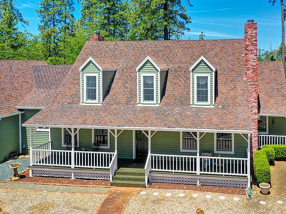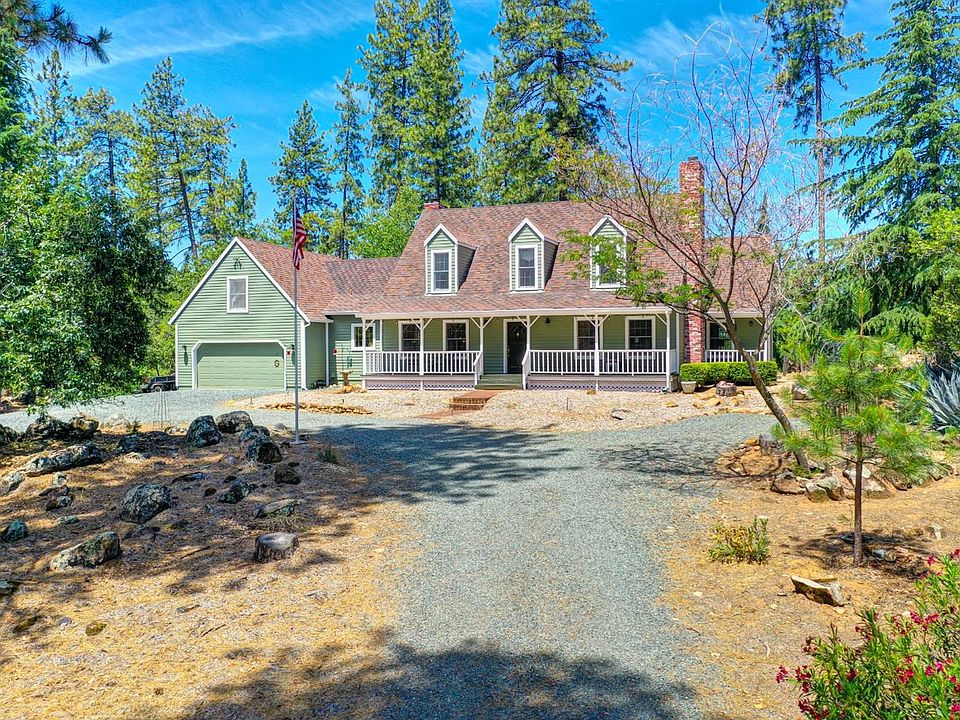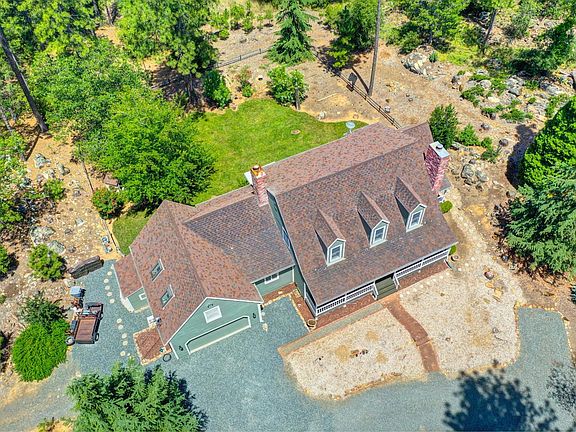 Welcome to this classic country farmhouse with a private, secluded setting. Inviting front porch, dormer windows, freshly painted exterior, ship lap siding. Very spacious rooms including upstairs and downstairs master suites. Formal living room/parlor with fireplace currently used as office could be used as sixth bedroom. Large bonus room over the garage has wrap around cabinetry makes perfect game room or fifth bedroom. Homey country kitchen has large butcher block island with eating bar, roomy breakfast nook has wrap around windows overlooking backyard, there is a custom designed pantry too. Huge family room has wood burning stove and double set of French doors to back deck. Lovely wood flooring in entry, formal dining and kitchen. Laundry upstairs. Home sits at crown of 7.5 acres which are very usable with granite outcroppings, trees, ATV or walking trails. County land use zoning indicates two dwellings possible, interested parties to verify with Placer County