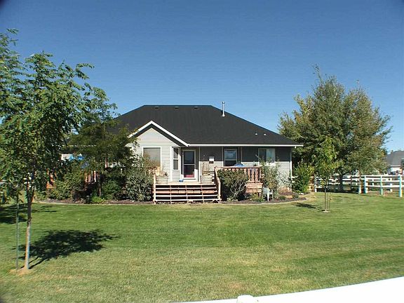 Beautiful home with acreage!! White vinyl fencing around entire property sets the stage for this well manicured country home. Large garden area, barn, stables, pressurized irrigation, mature yard and trees, award winning landscape and setting will have you yearning to stay! Then through the front door you will find a large entry with stunning hardwood floors that extend throughout, open split bedroom floor plan, gas fireplace, formal dining, country kitchen, beautiful master suite opening out onto a spacious deck spanning the entire back side of home. The perfect place to enjoy the mountains in the distance or just the peacefulness of home.