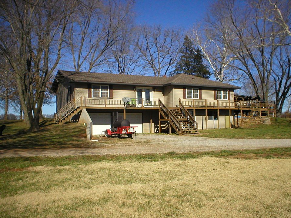 4BR, 3BA house on 70 acres m/l. RECENTLY REMODELED. Located just off of Hwy. 54 between El Dorado Springs and Nevada. Vinyl siding. 4 Acre m/l stocked lake. Open floor plan, with stainless steel appliances that will stay with the home. Master Bath includes a Jacuzzi tub for 2. Wrap-around deck that overlooks one of the 2 ponds on the acreage. Unfinished walk-out basement. Many extra features: 2 hunting shacks, Barn, storage shed, Grain bin, Attic fan, insulated, 2 car carport, and 2 car basement garage, partially fenced, 4 ton heat pump, and reasonable Utility costs.