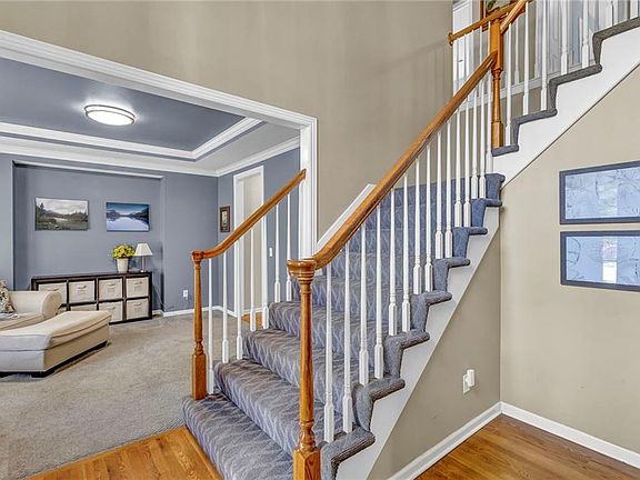 Welcome to Amber Hills Estates and this wonderful south Olathe home! Upon entering, you'll be greeted by the light filled vaulted entryway. Enjoy entertaining in the freshly painted kitchen and great room- plenty of space to host for the upcoming holidays! The main level also includes a dining room, or additional living space- you choose! Upstairs you'll find the primary suite which includes a sitting room perfect for unwinding at the end of the day. 3 additional bedrooms offer plenty of room for family, guests or office space. Brand new carpet in the bedrooms and basement is an added bonus! Downstairs find a functional rec room and full bathroom. Outside we offer a newer deck and stamped concrete patio, perfect for outdoor fun, and freshly painted exterior. Home includes a whole house surge protector & radon mitigation system. This is a very well maintained home, ready for new owners!