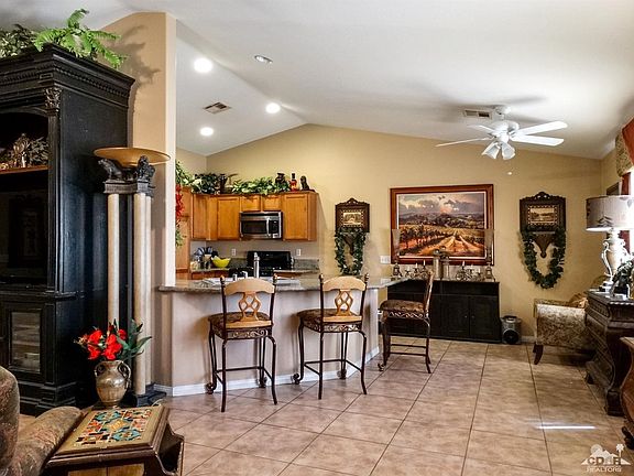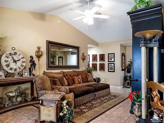 Fantastic 4BR/2BA in Vista Del Mar! Move In Ready! Beautiful slab granite counters in Kitchen and Baths, lovely wood shaker style cabinets in kitchens and baths. Stainless steel kitchen appliances. Open concept living room and kitchen with vaulted ceilings and recessed lighting. Ceiling fans in every room. Tile floors in main living areas, carpet in bedrooms. This home is in great shape. Two car garage. Fenced yard in back. Concrete tile roof. Views in every direction--mountains all around and the Salton Sea. Solace and solitude abound. Come and see it! Standard sale--Make us an offer!
