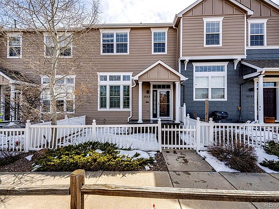 This Castle Rock Townhome sits on a premium lot overlooking a beautiful meadow/open space with front door access to walking trails. 1.5 miles from Ridgeline Open Space with dirt trails for hiking and biking. Greenbelt/Meadow views from front of home. This 3 bedroom, 2.5 bath townhome also features a bonus den/study area off the dining room. Vaulted ceilings. Newer A/C unit and water heater-2021. New microwave and oven/stove 2024, quartz counter tops. Wood grain tile flooring in kitchen, dining area and den/study. Refrigerator included. W/D hookups. Front patio and fenced in yard area. 2 car garage and large crawl space for storage. HOA includes water, trash & recycling, snow removal. Complex has had new exterior paint. Location is close to I-25, Downtown Castle Rock, shopping, recreation, dining, walking trails.