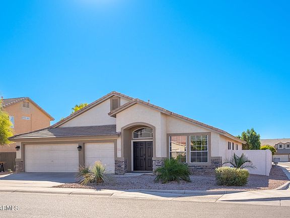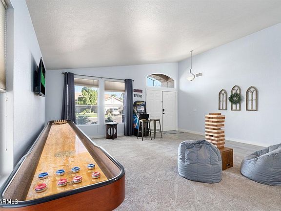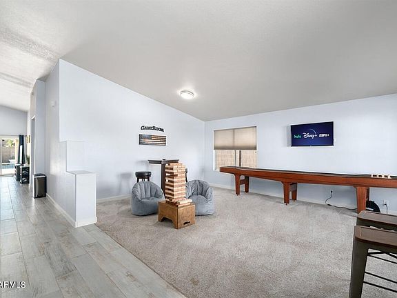 Welcome to this pristine single family home situated on a corner lot with no HOA! As you enter you are greeted by vaulted ceilings, wood-like tile flooring, & neutral paint throughout. The formal living area has been transformed into the ultimate game room. Flowing nicely into the kitchen that boasts stainless steel appliances, ample cabinet space, a pantry, and kitchen island. Wonderful space for entertaining with an open concept into the great room. Split floor plan with a large primary suite that has access to the backyard, a walk in closet, & upgraded tile surround shower and quartz countertops. The backyard has it all with a covered patio, pool with a fountain, artificial turf area with a putting green, and a BBQ. Seller is offering 5k in concessions!!