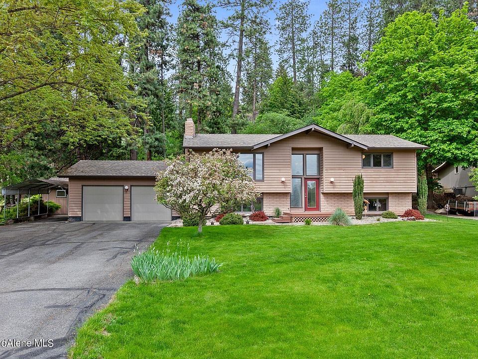 Dalton Gardens-one of Coeur d Alene's most desired neighborhoods where your Park-like setting is right in town! Boasting privacy with the hill behind you, quiet street with no thru traffic, 1 acre, 2364 SF, 4 bedrooms and 2 full baths, plus a bonus room, a 16X24 SHOP with workbench and 220 power, garden shed and large deck in back to enjoy with nature. Split level with main floor living and attached 2 car garage, RV Carport and beautiful perennials, trees and natural landscaping up the hill. Home needs some TLC and updates to make it your own.. Location, Location! Make this yours today!