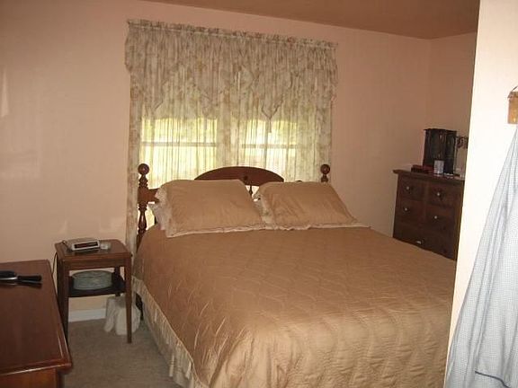 Close to town, nestled in the woods with lots of wildlife 3 bedroom log home with concrete block garage. 6 x 20 covered front porch. 16 x 20 deck. Ready to move into, no work needed here! Wood floors in living room, kitchen and under carpet in bedrooms. All electric. Two drives. Radiant heat in ceiling. Woodburning stove. (Additional 4 acres to south available--this includes the 30x40 metal shop.Call listing agent for more info.)