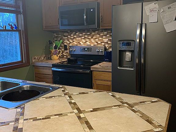 Adirondack Sanctuary in Hadley, NY. Surrounded by thousands of private and state forests. Minutes from Lake Sacandaga, Lake Luzerne and the Hudson River. The home is 45 minutes to Gore, 1 1/2 hours to Whiteface and 30 minutes to West Mountain. Only 20 minutes to Lake George. The house is on 2 acres +/- with attached heated 2 car garage, 22'x24' pole barn which has electricity, wood stove and loft storage, a 8'x8' garden shed and small livestock shed with electricity. The property has low maintenance landscaping with a small patch of blueberry bushes, wild black raspberries and young pear & peach trees. The house is approximately 2,000 square feet with 3 bedrooms, 1 bath and an office space/den/game room. Large master bedroom with his & hers closets. Kitchen appliances are 2 years old. Tile countertops in kitchen and solid bamboo flooring in living and dining rooms. Finished basement to walk-out patio. Large pantry with storage and stand up 25 cubic foot freezer that stays with the home. Propane fired hot water heater and the house is heated with propane forced hot air furnace. Also has a wood pellet stove in the basement den with back up baseboard heat.