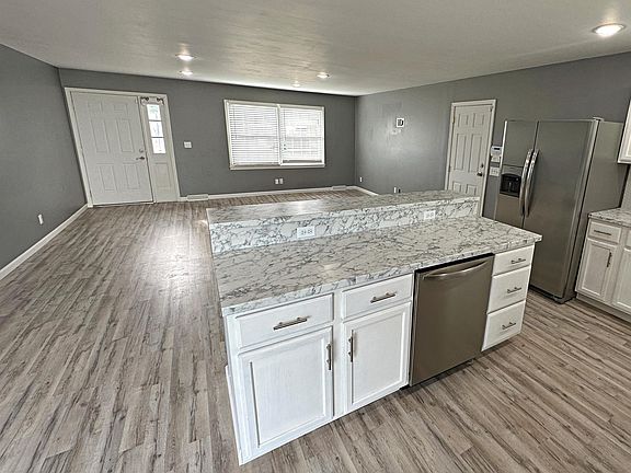 Updated and centrally located with 4 bedrooms all on the main-level ready for you to call home! The main-level features an open great room, dining area, and kitchen with all appliances and island that is the perfect space for entertaining. The large primary bedroom with private bathroom includes double sinks, bathtub, and separate shower plus a large walk-in closet. Additional bedroom with a private bath and walk-in closet, 2 more bedrooms, and another full bath with tile surround finish out this level. The lower-level offers lots of additional space to make your own as well as the potential for another bath. Outside you will find a nice patio area to enjoy the beautiful weather and if you like garage space you will absolutely love that the upper-level has a 2-car attached garage for convenience while the lower-level provides garage space for 3 or more additional vehicles or hobbies. Let’s take a look at this one today! Please click on the link below to see a virtual tour of this home.