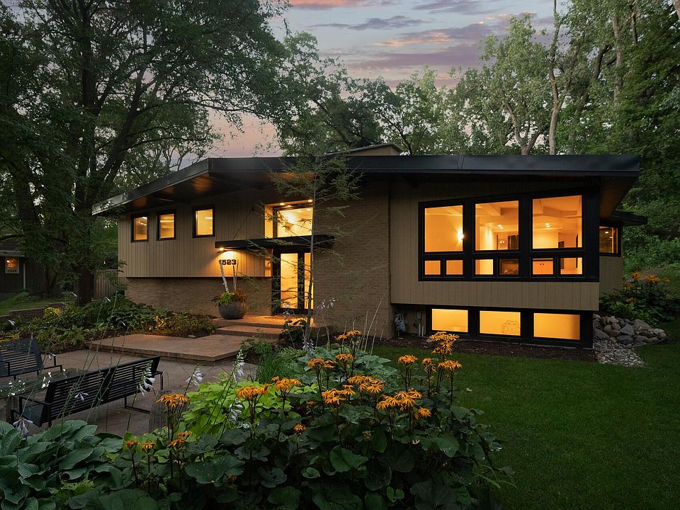 Beautiful mid-century modern home on a .63-acre cul-de-sac lot - tons of outdoor spaces to enjoy - several patios, wraparound deck, firepit, wooded privacy & more! Highly desired South Tyrol neighborhood. Close to Cedar Lake, Lake of the Isles, Lake Calhoun, Theodore Wirth Regional Park, Shops at the West End, Highways 394 & 100! Brand new roof & gutters, freshly painted interior, refinished hardwood floors. Sun-filled living room with vaulted ceiling & gas fireplace. Large dining offers double-sided fireplace & built-ins. Kitchen remodeled in 2018 - high end Bosch & Sub-Zero appliances, dual dishwashers, bar/buffet area, quartz countertops! Stunning family room with a wall of windows & gas fireplace. Bonus room & gorgeous 4-season porch with deck & backyard access! Master Suite with walk-in closet & private bath. UL half BA, 2 BRs (1 with ensuite bath, 1 with attached bonus area). LL BR with ensuite bathroom, big recreation area, office, tons of storage. Home warranty included!