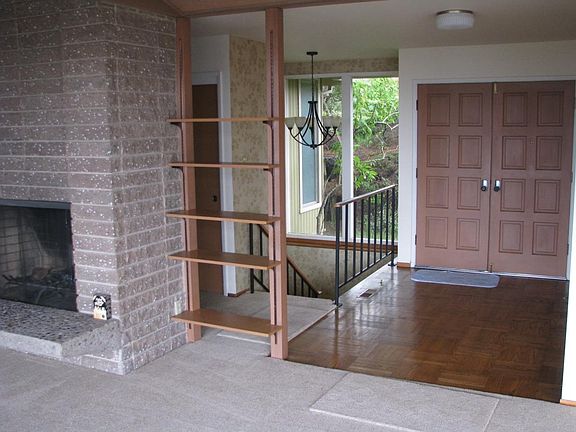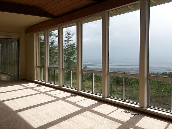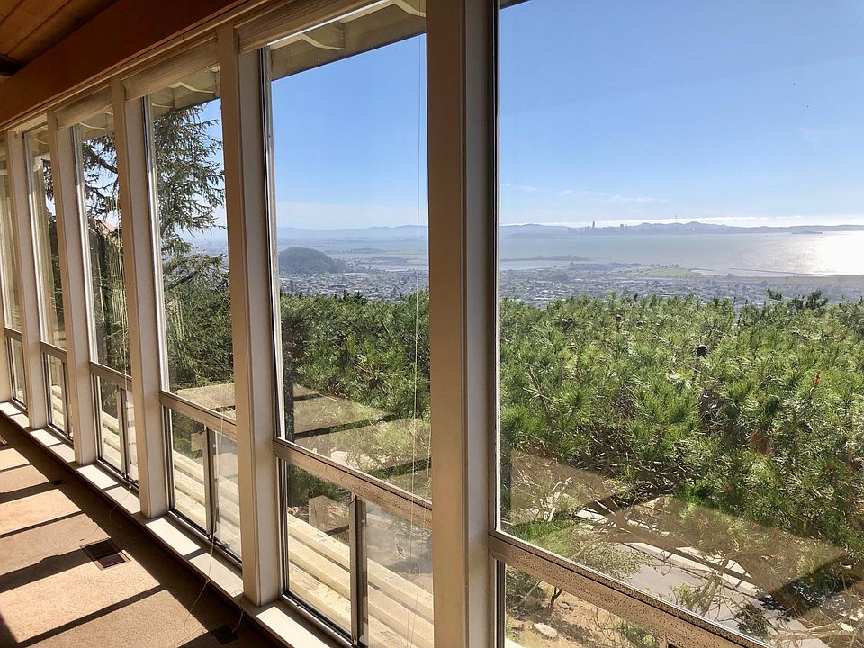 Mid-century modern home at the end of a quiet cul-de-sac with a dramatic 3-bridge view of the San Francisco Bay and beyond. Spacious living spaces including a large living/dining room and huge downstairs family room with adjacent home office. Two bedrooms and two baths upstairs (one ensuite master with hall of closets), and one bedroom and bath downstairs. Two-car garage, laundry room with washer and dryer, and shop. Outside deck off dining room with view. Down the street from Madera Elementary School, easy access to BART, and close to a bus line. No pets.