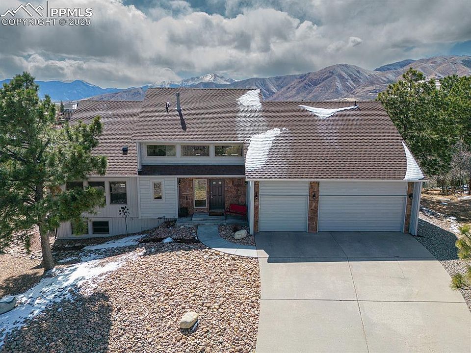 Welcome to this stunning custom home in the quiet west-side neighborhood of Oak Hills. Offering breathtaking, unobstructed mountain views from most rear windows of the home and the deck. This home has been meticulously maintained and upgraded for energy efficiency with luxury appointments added in the kitchen and master and main living spaces to ensure everyday is a special day. The entire main level was re-imagined with walls removed, exterior doors added, and flow revamped to ensure proper flow for today's living. This home features a brand-new custom kitchen equipped with high-end Jenn-Air appliances, a wine fridge, and a coffee bar—a perfect space for culinary enthusiasts and entertainers alike. Step onto the expansive composite deck, where you can soak in Pikes Peak views, and notice that you can't see a neighbor behind you until the next ridge over...why? Because there are none! The setting is perfect for morning coffee or evening gatherings. The home is designed for energy efficiency, boasting PV solar panels on the roof, complemented by a Tesla Powerwall battery backup, ensuring sustainable and reliable energy. The master retreat is a private sanctuary, featuring a secluded deck with panoramic views, a gorgeous custom bath with a free-standing tub, an oversized shower with rain head, and honed stone countertops. The re-imagined closet offers ample space and organization, making this suite a true haven. There are 2 additional bedrooms, bath, unfinished storage area and loft space to complete the upper level. The spacious basement is designed for entertainment, complete with a large walk out rec room with full wet bar. In addition there is a dedicated office area (or gym space) that will flex to your lifestyle. The large guest retreat and 3/4 bath ensure comfort and privacy. Unwind in the included hot tub, the perfect place to relax and enjoy the stunning surroundings. This home is truly a rare gem. Don’t miss your chance to make it yours!