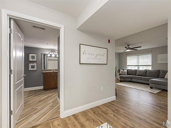 Move-in ready and full of trending updates, this 2-bed, 2-bath condo in Montecito Terrace checks all the boxes! Just one flight of steps up, you'll find new luxury vinyl plank flooring, updated lighting and fresh paint. The open kitchen shines with white cabinets, new granite counters, black hardware, stainless steel appliance's (yes, the fridge stays!), and a large pantry. Step out to your covered deck with extra storage. The spacious primary suite features a walk-in closet, and an ensuite with new fixtures, adult height vanity and shower. The second bedroom has its own bath with a tub/shower combo and matching updates. Washer/dryer stay. Assigned covered parking, plenty of guest spots, and a scenic walking trail around the neighborhood lake. Just minutes from 364/94, shopping, dining, and Francis Howell schools! Photos to be added on July 22, showings start on July 25.