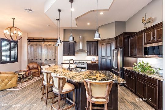 This is your opportunity to get into this beautiful nearly new custom home in the upscale neighborhood, Bella Horizon. Rich mocha stained knotty alder cabinetry and extravagant granite flows through the well appointed chef's kitchen. The same beautiful cabinetry and granite can be found in all 4 bathrooms. 8 ft solid knotty alder doors throughout and custom 8 ft barn door on 2nd Master Bedroom. Neutral upgraded tile in traffic areas. Upgraded carpet in the main master bedroom and 2 of the additional bedrooms. Custom lighting, fixtures, wood work and more......Gorgeous desert and mountain views from the back and front yard of this 4 bedroom, 4 bath home. Extra large garage for all your cars and toys.