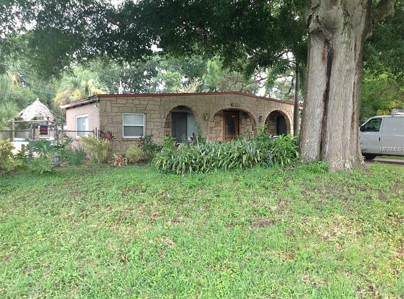 This cute 3+ bonus /2 ranch style home has a stone front. The interior has large ceramic tile floors, updated kitchen with light maple cabinets and granite counter tops. The Split floor plan with bonus room or fourth bedroom allows for family privacy. The bathrooms have been updated. The pool with separate spa sets on a corner fenced park like lot with plenty of entertaining space. new roof 2015
