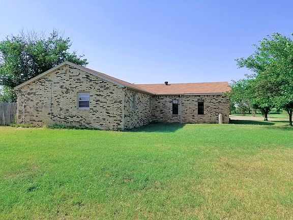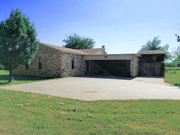 Country living secluded area 4 bedroom brick home with 2 full bath with tubs 2 car carport with entrance that walks into a 600 square foot living room with fireplace screened back patio and storm shelter on 8 acres out of city limits with a 2 bay shop extra storage building and huge stock pond. The rear of the property has 287 highway frontage with frontage rd.