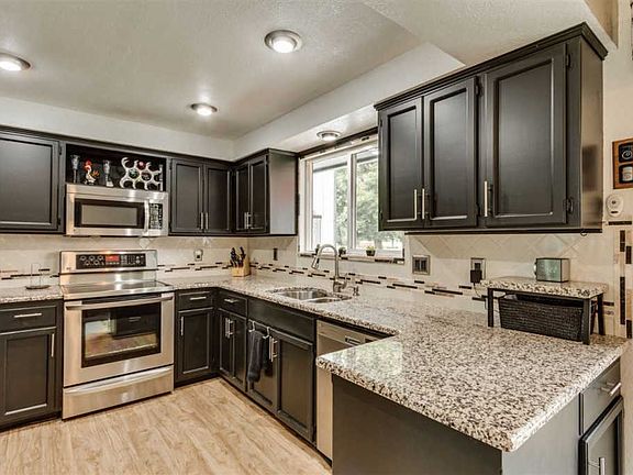 Remodeled 4 bed/2 bath 3 level home w/ newer vinyl windows, flooring & water heater. Conveniently located entertainer's dream w/ stainless kitchen appliances, granite counters, newly refinished cabinets & designer paint throughout. Keep cozy in winter with a fireplace & wood stove & cool in the summer w/ whole house swamp fan & optional neighborhood pool membership. The basement features a game room/bar area to round it out. Gorgeous backyard w/ expansive deck, patio, mature landscape & RV access.