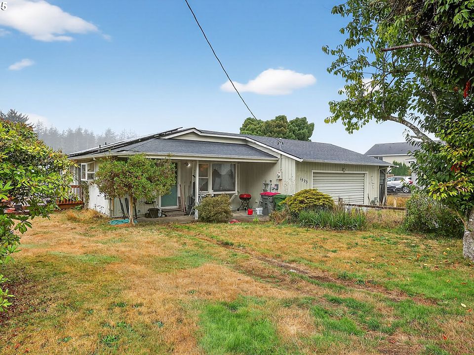 Charming single-level ranch offering 2 bedrooms and 2 baths with a functional and inviting layout. The living room and bedrooms feature cozy wall-to-wall carpet, while the kitchen and dining area are enhanced with durable laminate flooring. Oversized windows fill the home with natural light, and sliding doors from nearly every room create a seamless connection to the outdoors. Step outside to a spacious deck overlooking the large backyard—perfect for relaxing or entertaining. A wonderful blend of comfort and indoor-outdoor living. This ranch is ready for a young family to customize, or someone searching for a beach or fishing get-away to fix-up to their specifications. It has a new roof, solar panels that off-set the cost of electricity, two sliding glass doors and a large garage.