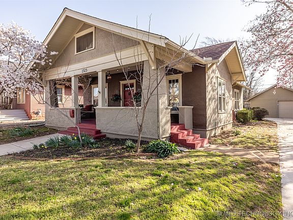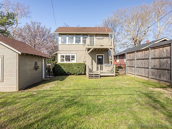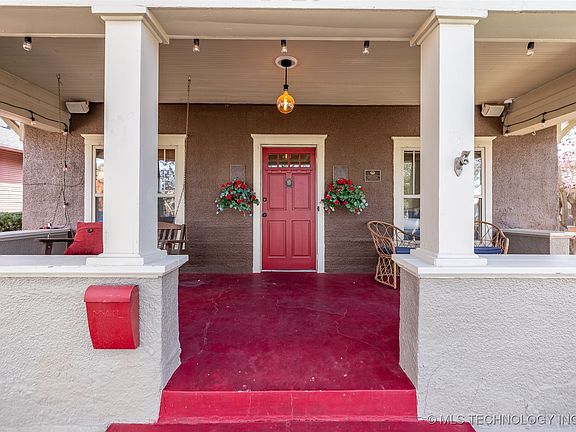 Welcome to the Red Door Bungalow in historic Swan Lake just steps from all the best of Tulsa's Cherry Street district and a short stroll to Utica Square! Move-in Ready with Washer/Dryer and Refrigerator included plus important updates such as newer windows, updated first floor Bathroom, new extra-tall tall privacy fence, new driveway and refurbished Garage with electric overhead door offering ample space to park one car plus a large storage area or workshop. The gracious front porch beckons you to sit and chat awhile from the captivating porch swing. Flooded with natural light, the inviting front Living Room boasts tons of windows, charming fireplace flanked by built-in cabinets and hardwood floors that flow throughout the home. The spacious Dining Room makes this room a great flex space. The large Kitchen with movable center island and convenient pantry cabinet flows easily to the Utility Room and backyard. 2 large Bedrooms plus a sleek newly updated Bathroom complete the first floor. Upstairs features the winsome Primary Bedroom and ensuite Bathroom with rows of windows and a welcoming balcony to enjoy a morning coffee or to unwind after a long day. Relax in the spacious backyard from the covered deck and enjoy ultimate privacy from the extra-tall fence with a sturdy and convenient gate to the back alley. The improved driveway offers plenty of parking and leads to the newly refurbished Garage with generous work area and storage. This Red Door Cherry Street Charmer offers awesome Midtown walkability and is the perfect place to call Home!