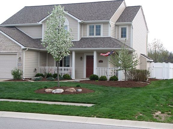 Built in 2006 this lovely and spacious 2 story, 4 bedroom, 2 1/2 bath home with a spacious 3-car garage sits on a beautifully landscaped lot about 10,000 sq. ft with a no maintenance white vinyl fence (Eagle Fencing) and in ground sprinkler system, and features a gorgeous railed front porch to sit and relax during spring and summer months. This home has plenty of upgrades and is move-in ready. Its location is convenient to all Northwest Allen County Schools and close to shopping and activities. Upgrades include ceramic tile floors in the kitchen, half bath, laundry room, and entryway into the home. Laminate wood floor was installed in formal dining room or den, living room, and new carpet upstairs and in all bedrooms. All windows have Hunter Douglas double pleated honeycomb window treatments downstairs and in front windows of the house. Hunter Douglas wooden blinds upstairs in back bedrooms with no worries because of the lifetime warranty. Other upgrades include tile in both upstairs bathroom on floor, up walls, and above shower walls in neutral colors to appeal to any style. Walls throughout the home have a fresh coat of paint in a neutral color. Bedroom are spacious with closet organizers, and has plenty of storage spaces. Upon entering this home the two story foyer is gorgeous with white handrails and ample storage with two closets. Living room is open to kitchen and entryway and has a brick gas fire place, which is maintenance free, and surround sound/television mount above fire place. Kitchen has tile backsplash to add to the decor with a large pantry and ample cupboard and counter space to use during any family gathering. The laundry room is spacious for different types of appliances and features a shelf above for storage needs. In the 3-car garage a water softener is installed and a whole house humidifier to keep house well maintained for good health.