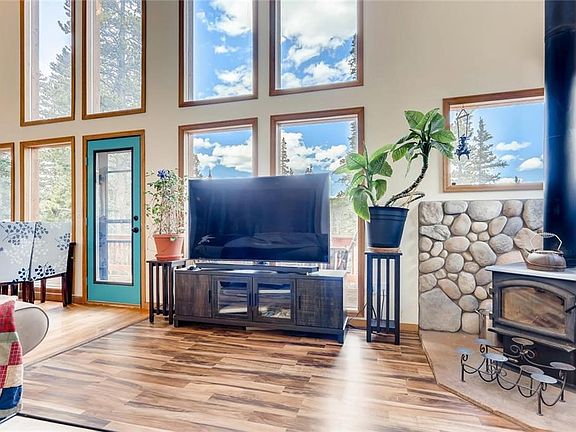 Breathtaking Wall of Windows captures great mountain views of Buckskin & Bross, as well as surrounding forest from open living area that includes kitchen & dining area w/vaulted ceilings & wood burning stove. Upstairs large master bedroom with private bath! This beautiful home has recently been updated w/new flooring, new awnings, new entry doors and new screens. Enjoy oversized deck & .92 acre parcel w/cozy fire pit to enjoy on those starry evenings. Plenty of storage! Hiking out your door!
