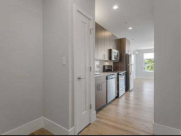 Modern studio with a Murphy band and modern kitchen. Stainless steel appliances, including dishwasher or quartz countertops and under mounted sink. In unit laundry. Pets are welcome and no pet rent.