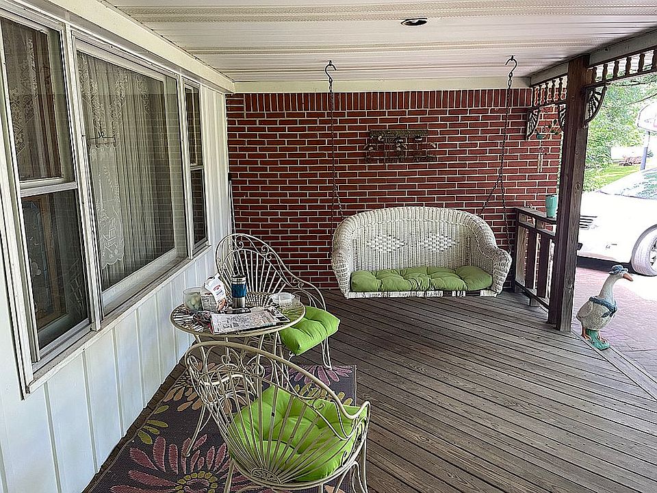 Ranch house with large front porch, nice back deck, 3 bedrooms, 2& half bathrooms. Fireplace with insert.