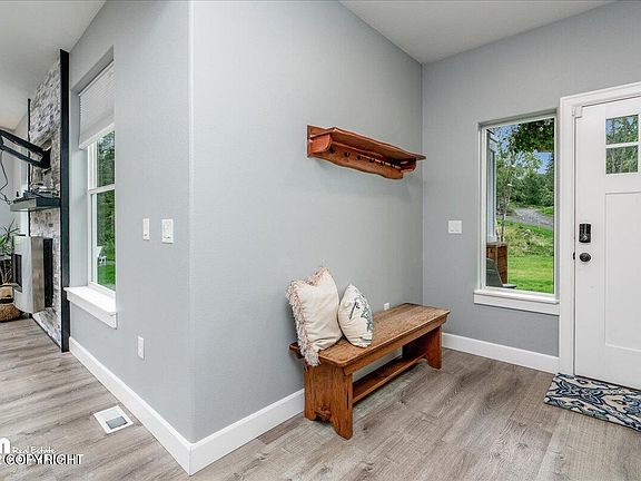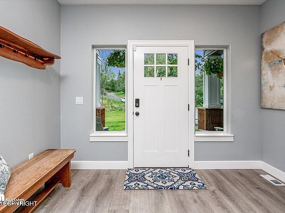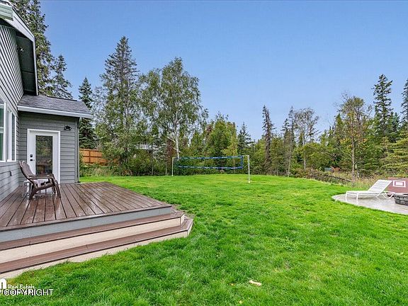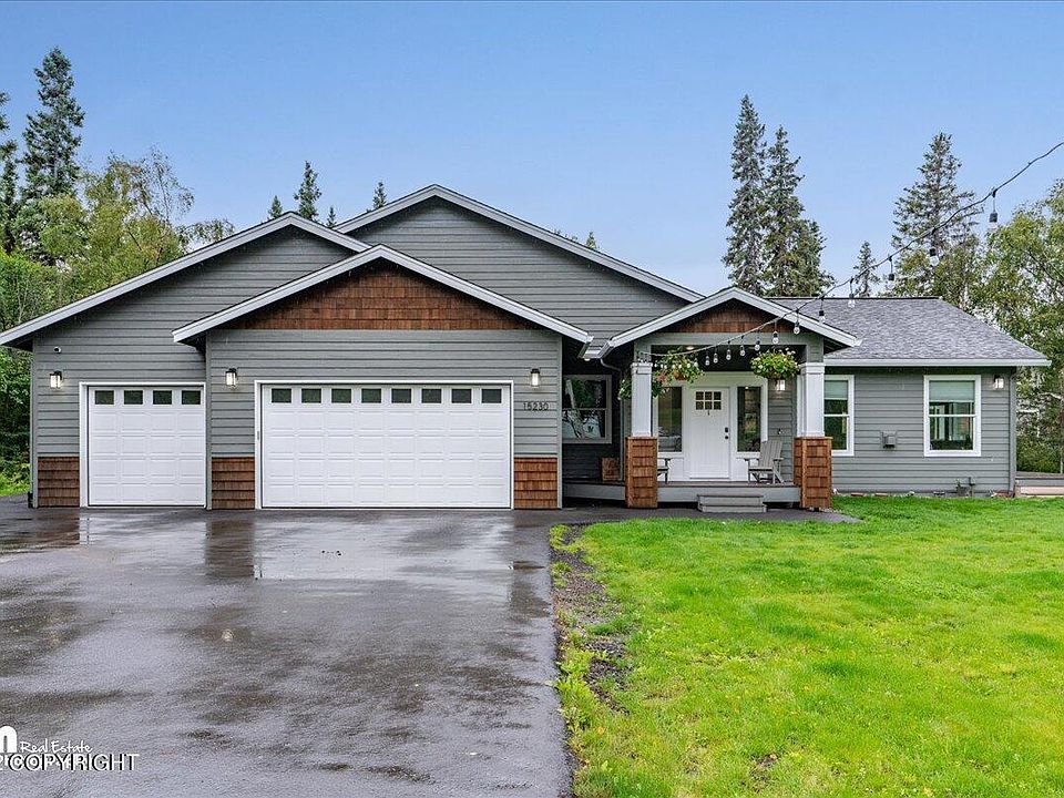 Beautiful ranch home on South Anchorage's lower hillside built in 2019! Enter into a bright and airy great room that opens to the kitchen and dining with 9ft ceilings and loads of natural light. Well laid out floorplan with home office, 3 spacious bedrooms, and storage throughout. The Master bedroom features an ensuite bathroom with a large walk-in closet, double vanity, walk-in shower, & water...closet. .65-acre lot is level with a stone-designed concrete fire pit, 2 decks, and over 1,000SF 3-car garage!