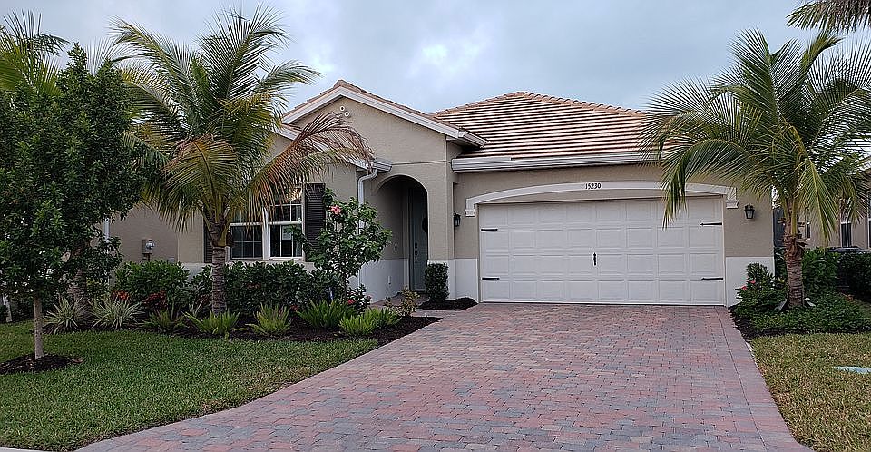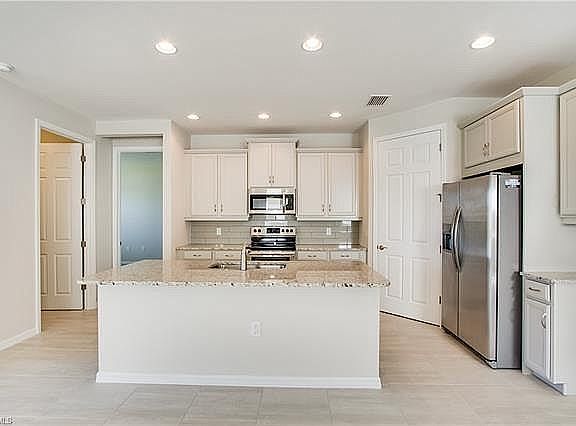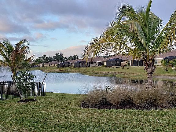 Spectacular New Home in Venetian Pointe! This Clifton 2-bedroom with Flex Room (or possible 3rd bedroom with no closet) is situated on a beautiful lake view home site with a fountain view! The D.R. Horton home features a large open concept, oversize master bath suite with walk-in shower, double sink vanity, and two very large walk-in closets. The kitchen is light and bright with a large granite island perfect for your chef. Upgraded 42" kitchen cabinets are Dove gray in color and are enhanced with crown molding and under cabinet lighting. The home includes stainless steel Frigidaire dishwasher, stove, side by side refrigerator with water and ice in the door and washer/dryer. Window blinds throughout. Beautiful light 20" floor tile in all the living areas and luxury carpet in the bedrooms and Flex room, which also has 8’ French glass double doors. Home still under full warranty until May, 2020. Recently added options include stainless steel sink with granite top and cabinet in laundry room, upper and lower cabinets with wine rack and granite top, and Hunter fans in 4 rooms and lanai. Shelves were added in all closets and drapery rods above all windows. Garage upgrades include pull-down attic ladder and epoxy paint on garage floor. Venetian Pointe is situated in a perfect central location; close to SW Florida Regional Airport, shopping, medical facilities, Lakes Park, and of course beautiful beaches! NO flood insurance required and NO CDD fees! This home was just purchased new in May 2019 and must be sold due to owner relocation. Don’t miss out on one of the last Clifton models with a lake view and a great competitive price!!
