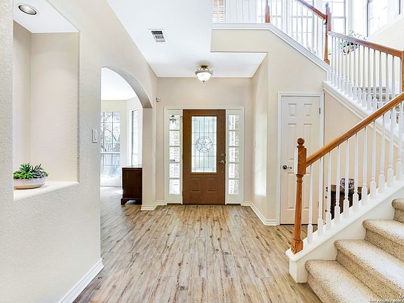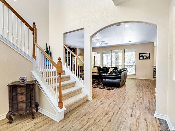 Immaculate Custom, Designer, Retreat and Lavish HOME! Desirable Wood Tile throughout the first floor. Granite in Kitchen and Baths. Distinctive Large Bright Windows upstairs and down let the outside beauty in!! 2 Living Areas -Media/Gameroom. Lavish Outdoor Sanctuary. Lush Landscaping, Mature Trees, Totally Private. Stained Wood Decking and Covered Patio front and backyards. 3 Car with much extra parking near garage & Rock Storage Shed Matches Home. Primary Suite Downstairs w/ Double Shower and Extended Closets, Huge Bedrooms, Storage Galore. 2nd bedroom downstairs can be office or workout area. 2 bedrooms upstairs with a huge family living area. Small room of the entry can be office area or comfy nock. Community has much natural landscaping and HOA requires it to stay that way! Great area to walk and bike and exercise. Backs up to Government Canyon. Close to 1604 and 211 and activities in the Helotes Area. Fully fenced in yard! Stone fireplace. Gated Neighborhood all Natural, Peaceful SA Hill Country Living close to all shopping and dining and business. Make this HOME Yours!! Welcome!