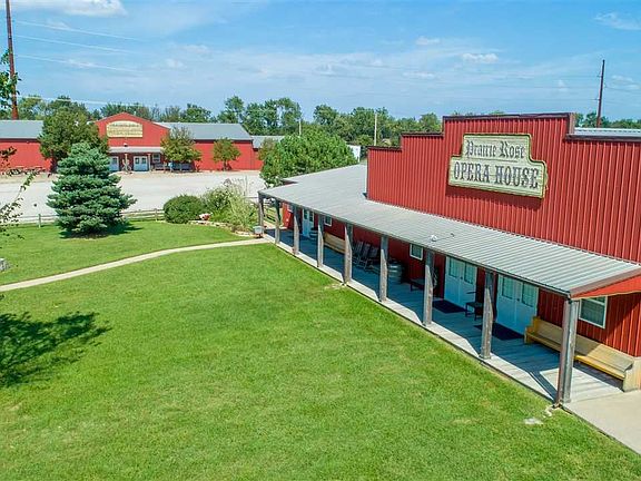 This premier event venue is a rare offering to the market. The Prairie Rose Ranch and event venue is located in Butler County and just a short drive from the Wichita, Kansas metro area. The property provides a diverse scenic terrain and characteristics that lends its uses to a wide variety of potential buyers. The property consists of approximately 14,000 square feet of event space with multiple buildings that could be utilized for hosting events, creating a corporate retreat, provide a community gathering for a church group, or the perfect country escape for an individual and all their toys. The land consists of 47.80 acres, small pond and includes the Prairie Rose Opera House building, the Prairie Rose Museum building, the Happy Trails Theatre building, horse stables, multiple outbuildings for storage, an outdoor entertaining area surrounded by the Whitewater Creek, and a RV park with 12 hookups for additional income possibilities. Don't miss this buying opportunity for one of the most well known properties in our area.