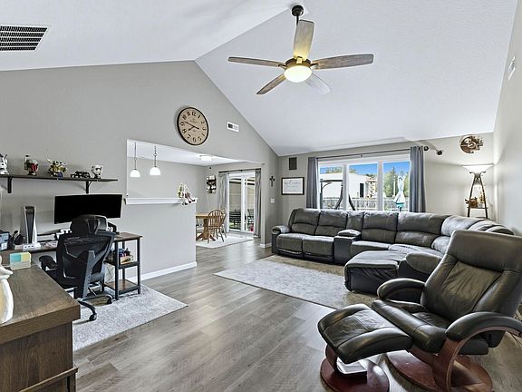 This charming 4-bedroom, 2-bathroom home in Huntertown offers a spacious layout and inviting style throughout. The open-concept living room features soaring vaulted ceilings and large windows that fill the space with natural light. The kitchen is designed with dark cabinetry, ample counter space, and a breakfast bar. The adjoining dining area opens directly to the backyard for seamless indoor-outdoor living. The private primary suite provides a comfortable retreat with its own full bath, and three additional bedrooms offer flexibility for family, guests, or a home office. Outside, the fully fenced backyard is ideal for play, pets, and entertaining, complete with a large patio, pergola-covered sitting area, and plenty of open green space. An attached 2-car garage completes the package, making this home a wonderful blend of comfort and convenience. Schedule your showing today!