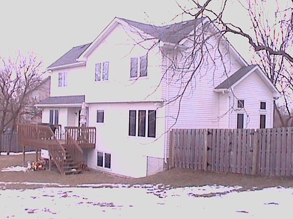 This is a Country Classics Homes, by Gratias Construction, sits on a acre, and a Cul-de-Sac. The entry into the formal living room features a vaulted ceiling. There is both a dining room, plus dining off of the oak kitchen, which also has a breakfast bar. Pergo floors add warmth from kitchen to family room. All stainless steel appliances. Pella sliders take you outside to enjoy the deck and a huge fenced yard with a full wood swing set and a basketball court. 3-car attached garage. A bath and laundry area finish this level. The master bedroom has a large walk-in closet and a full bath w/ Jet tub, separate shower and double sink. 4 bedrooms total on second floor with another full bath. The lower level is finished with a rec room and bath w/ 2 daylight windows. Central vac. and security system are nice add-ons. Close to bike path and convenient to everything. By Country Club.