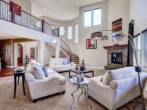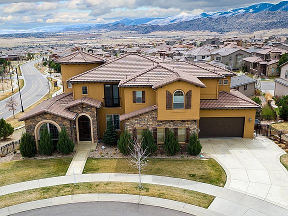Custom home in Solterra with a walkout basement and amazing views. Located on a private, quiet cul-de-sac. Architecturally stunning exterior and one of the larger homes in Solterra at 6,275 sq ft. This home rivals Parade of Homes residences. From the very moment you walk up to this property and see the professionally landscaped front yard complete with custom front patio with waterfall you will know the owners have put nothing but this finest into this home. Unique open floor plan with 19' cathedral ceilings in the Great Room and a curved staircase leading to the 2nd floor. Custom floor to ceiling stone fireplace is stunning! Chef's kitchen with GE Monogram appliances with built in refrigerator added in 2018. Large island shaped so all can see to converse and seats five. Brand new Butlers pantry added with two Perlick coolers, leather granite, custom open shelving and so much more! Opulent master suite with a separate sitting area, two sided gas fireplace and stone wall with access to private balcony and a jaw-dropping view of Red Rocks. Custom Coffee/Wine bar added in 2018 along with hickory hardwood floors. Large master bath with new quartz counter tops, cabinets and custon faux paint added in 2018. Over-sized master closet with new hickory hardwood floors added in 2018. Two more bedrooms on the upper floor adjoined by a jack-n-jill bath. Huge basement with a rec room and wet bar, dishwasher, ice maker, monogram beverage cooler, monogram wine cooler with entire area remodeled in 2020. Includes a full service fitness area (could be used in many different ways by new owners) and art studio (again new owners could use this space in a number of different ways). Outdoor living includes an upper level covered deck with a fireplace right off the kitchen. This jaw dropping backyard boasts a dipping pool, mountainess water feature, 16 Ft pergola, hot tub, top of the line outdoor kitchen with Lynx grill, fire pit, and too many other beautiful features to list here. 3 car garage with pass through and heated driveway. Award-winning clubhouse with an Infinity edge pool, social events throughout the year. Live the Solterra Life!