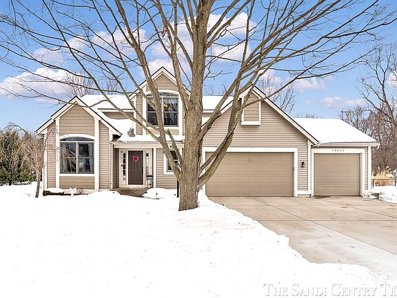 Welcome to 15233 Rannes Street. This meticulously maintained 4-bedroom, 3.5 bath home offers over 2,800sq ft of finished living space and sits on nearly 1/2 acre, providing a rare combination of space and privacy. From the moment you step inside, the care and attention to detail are evident, making this home truly move-in ready. The main level offers a comfortable, well-planned layout designed for both daily living and gathering. Natural light fills the living room, highlighted by its distinctive arched window, while the formal dining room, framed by classic columns and a statement chandelier, creates an inviting setting for shared meals and conversation. Hardwood flooring extends throughout the main level living areas, adding warmth and continuity. The kitchen features abundant cabinetry, stainless steel appliances, updated backsplash and countertops, and a center island with seating. The adjoining dining area is lined with windows and includes a slider leading to the deck, overlooking the expansive backyard and offering an ideal space for outdoor dining, entertaining, or relaxing. The family room is anchored by a gas fireplace with a wood mantel and tile surround, offering a comfortable and welcoming space to unwind. A main floor laundry room and half bath add everyday convenience. Upstairs, you will find the primary bedroom with a walk-in closet and private bath featuring dual sinks, generous counter space, a soaking tub positioned beneath the windows, and a separate shower. Three additional well-proportioned bedrooms and a full bath complete the upper level. The finished lower level adds meaningful additional living space, featuring a spacious recreation area suited for media, fitness, play, or hobbies. The open design allows the area to adapt easily to changing needs while still feeling cohesive. A full bath on this level enhances functionality, and dedicated storage and utility areas provide practical space for seasonal and household items. A 3-stall garage offers ample room for vehicles, storage, and workspace. Recent updates include the roof in 2020 and the furnace and AC in 2018. Ideally located near the high school and elementary school, and just minutes from the nature preserve, the Grand River, and area bike paths, this property offers both convenience and access to the outdoors. With nearly half an acre and a setting that allows room to spread out, this home delivers space, condition, and location in one well-rounded package.