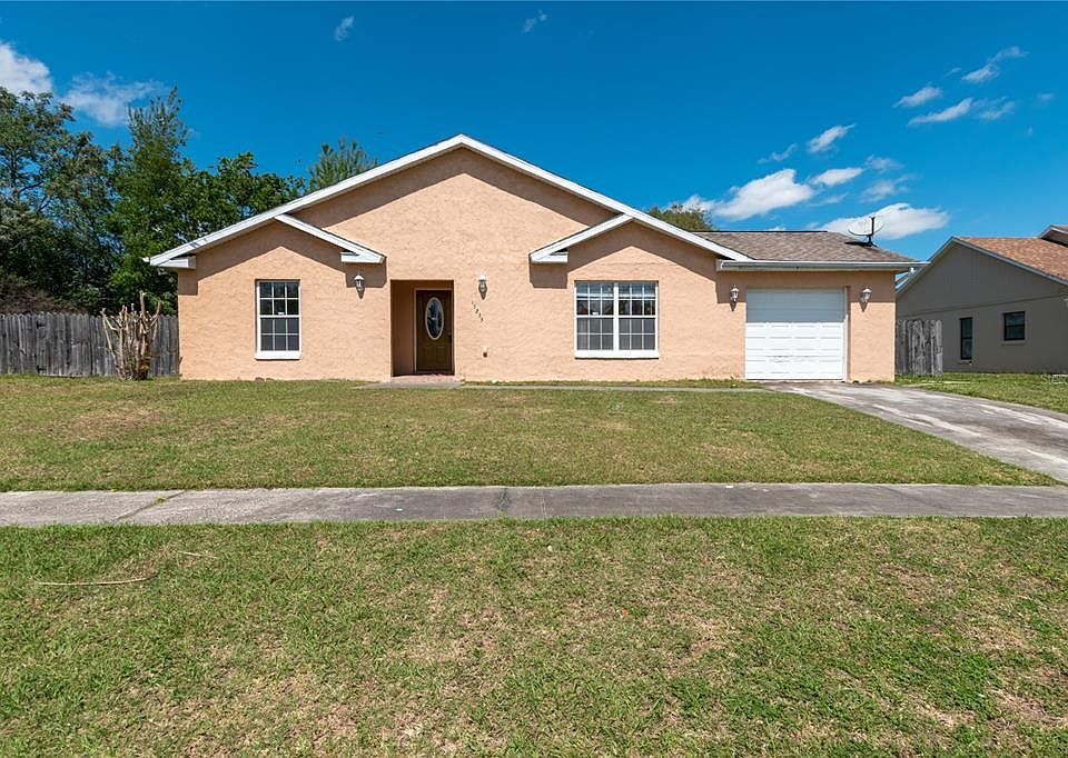 Room for the family - this 4/2/1 has over 1900 sf of living space and features a wonderful open floor plan featuring: great room with cathedral ceilings & plant shelves which opens up to the kitchen with island kitchen bar, all appliances, above cabinet display, and pantry; living/dining room which is currently being used as a bedroom; master with glass enclosed shower; 3 guest bedrooms; and a guest bath with glass enclosed tub/shower. Step outside to the back patio which overlooks the privacy fenced yard and enjoy your own private oasis. A wonderful large home ready for a new family.
