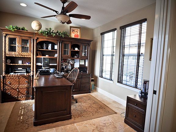 Award winning energy saver home by Lennar. What a treat, shows better than model. Dramatic curb appeal with Porte cohere and long driveway. Formal living room open to formal dining. Spacious family room with fireplace open to kitchen. Gourmet kitchen with top of the line appliances, granite counters and upgraded cabinets. Den downstairs perfect for home office. Master suite with fireplace, master bath highly upgraded with marble flooring, porcelain counters, vanity counter and jet tub. Three secondary bedrooms upstairs with two baths. Open loft and computer tech center. Highly upgraded with the finest. Versailles stone on the first floor, hardwood floors in the second floor. Wrought iron staircase, custom paint, designer window coverings and more. Large yard with professional landscaping, built-in bbq and stone hardscape. Assoc. offering pool, club house, park and more. Minutes from shopping, freeways and entertainment.