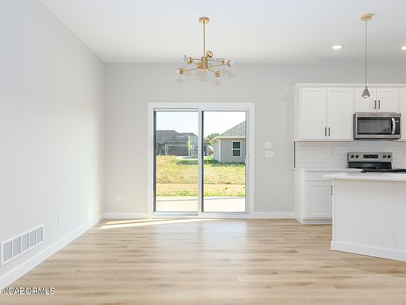 A stylish, modern three-bedroom, two-bathroom dwelling is complete. This residence flaunts an open floor plan, high ceilings, and sleek lighting throughout its expansive interior. The kitchen boasts abundant cabinetry, beautiful quartz countertops, and an extensive appliance package, ensuring a seamless transition into the home. The large primary suite showcases a relaxing soaking tub, expansive walk-in shower, and ample closet space with generous storage. The intelligent design yields plenty of room for social gatherings and family memories to be forged over the years. Proximal to Southern Boone schools, dining establishments, and Highway 63, this property's location is unmatched.
