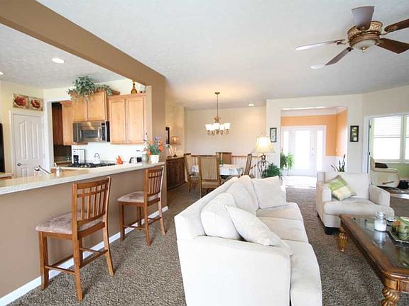 Enjoy this beautiful 2 BDRM, 2 Full BA Ranch w/BSMT in Britton Falls, an Active 55+ Del Webb Community! High Ceilings & Bay Windows! Great open FLRPLN! Large Great Rm w/FP, Sun Rm opens to Patio & premium lot w/awesome view of Pond w/lit fountains! Gourmet Kitchen-DBL Ovens, Gas Glass Cook Top and freshly painted interior, new Karastan Carpet throughout, Plantation Shutters, Custom Designed Master Closet, decorative curbing around home w/4driveway extension. Large Daylight BSMT, ready to finish!
