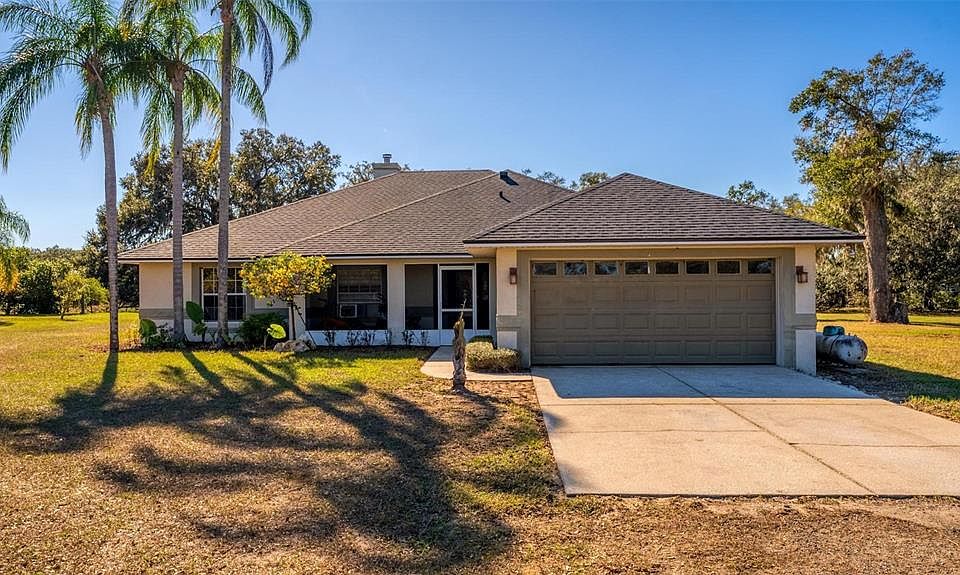 Bring your imagination when you come see this 8 full acres of Florida beauty. This property is absolutely gorgeous with its majestic oaks, fruit and citrus trees, (guava, peach, fig, lemon, key lime, avocado, cumquat, blackberries, figs, and more) with its picturesque sunsets overlooking the marsh behind the property. There are chicken coops for the egg enthusiast and even fenced off pastures and pens for larger farm animals and gardens if you desire. The potential of this property is endless and something you will struggle to find so close to the conveniences of shopping and dining, with the added perk of being so close to the turnpike and other major roadways. It sits just on the outskirts of Clermont and Minneola, a hot and up and coming area. This is country living at it’s best with privacy and seclusion nestled between Montverde (Montverde Academy is just 3 miles away) and Howey-in-the-Hills where million dollar homes and estates are prevalent. Green Mountain Scenic Overlook and the Ferndale Preserve are just around the corner, so if you’re a biking or outdoor enthusiast you will love this location. The home is a 1998, 3 bedroom 2 bath, 1,767 sqft open concept ranch with a newer roof (2021) and water heater. The kitchen is equipped with new appliances and a pantry. It opens up to a dining area and great room. It also has a full length screened porch on the back which has access to the master bedroom. This would be a great place to watch the magnificent sunsets. The owner enclosed part of the garage to add an office with its own mini split AC unit. Presently there are window units added for cooling but the home does have (non working) central AC. (We have reflected that in the price). The wood floors were recently added and the owner has done lots of projects around the house to bring it up to date and to show off its personality. There is a gas fireplace for those chilly nights or you could also sit under the stars and warm up around the outside fire pit that sits next to a covered patio or carport. Presently, the owner is using this area as an outdoor summer kitchen with running hot water and with all the cooking needs to host a fun outdoor entertaining event. There is ample room to add a pool if you desire. The property has a well with a well house and a large (owned) water softening system. There is also separate irrigation for the fenced garden area, which sits in front of the home. There is a large storage unit on the property to store your maintenance equipment and it is wired and equipped with a generator to power the house during outages. Also available with this property is a 32’ camper which is set up and ready to go for those out of town guests. Call to set up an appointment to view this gorgeous property today.