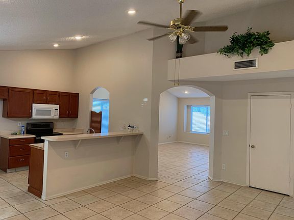 . 4 bedrooms, 2 bathrooms. Formal living room and dining room. Separate family room with eat-in-kitchen and bay window. Vaults throughout the house. All 3 bdrms have pot shelves above. 16 inch tile throughout the house. Large concrete 3rd car park slab.