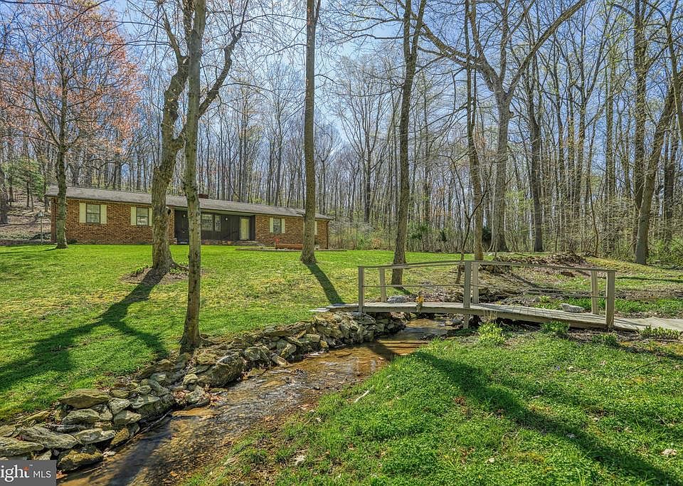 Enjoy country living in this beautiful brick rancher situated on just under 4 acres complete with a stream and your very own bridge! Still close to I-83 and shopping, dining, parks and country club, this home offers the best of both worlds. One floor living with three bedrooms, two and one half baths, laundry area, wood stove in living room and beautiful wood doors leading to the oversized back deck. A bright and cheery spacious kitchen with hardwood floors opens to the dining area offering gorgeous views of the backyard gardens and beyond. Relax, dine, or entertain in the many outdoor living areas including a gazebo, wood stove, fire pit, horseshoe pits, beautiful landscaping and aquatic fish pond! A partially finished lower level, two sheds, and a two car garage with large paved parking area are just some of the other features this home has to offer. A once in a life time opportunity! Properties like this do not come along every day!