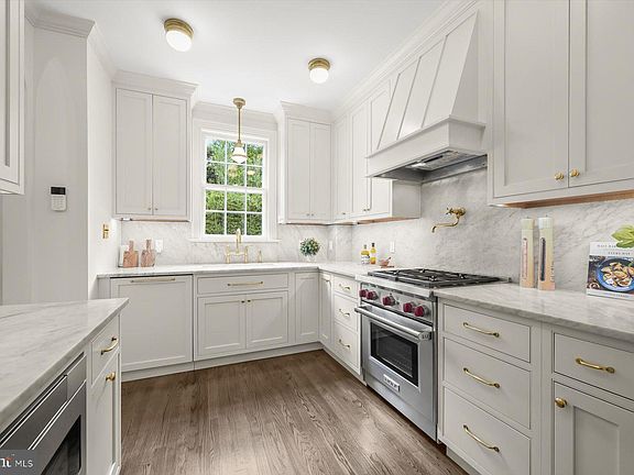 Ideally located on a quiet one-way street in the heart of Georgetown, this classic Federal-style home offers the perfect blend of historic charm and modern luxury. Spanning nearly 1,400 square feet, the residence features two bedrooms, two full bathrooms, and a series of thoughtful updates throughout. The main level was beautifully renovated in 2019, including a fully redesigned kitchen outfitted with Waterworks fixtures, a Wolf range, Bosch dishwasher, custom cabinetry, and upscale hardware and finishes. The adjacent living space features a wood-burning fireplace, stunning hardwood floors, custom built-ins, and Marvin French doors with automated transoms that open to a newly repointed rear brick patio. Visual Comfort lighting, Baldwin hardware and Forbes & Lomax switches elevate the home’s overall ambiance. Upstairs, two light-filled and spacious bedrooms offer ample storage and custom built-ins, with Marvin windows installed in the primary suite. Both bathrooms were fully renovated in 2025 with Waterworks fixtures and timeless Carrara marble tile. Just steps from the neighborhood’s iconic shops and dining along Wisconsin Avenue and M Street, as well as the C&O Canal, Georgetown Waterfront, Montrose Park, and Volta Park, this turnkey residence offers quintessential Georgetown living with every modern convenience.