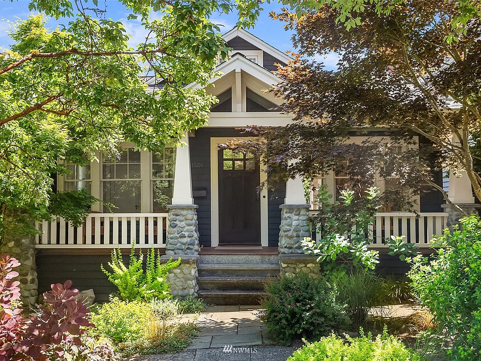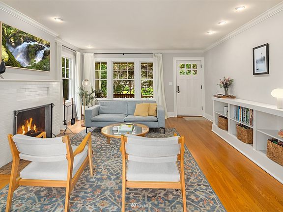 Charming craftsman on tree lined street in Madrona, your going to love it. Evening sunsets on your covered porch, stone columns, wonderful street appeal. Great combo of original finishes and tasteful updates include, spacious living room with fireplace, hardwood floors, formal dining to large party view deck, chef kitchen w/ views of lake, soap stone counters, stainless appliances, updated baths & more. Upper level primary suite, lower level media room, bonus storage & laundry offers future potential. Truly welcoming home in great walking neighborhood! Close to shops, bistros and bars. Garage access via easement on N neighbor's driveway - storage only.