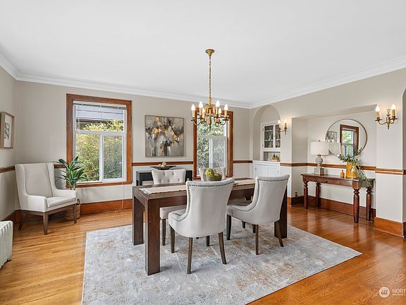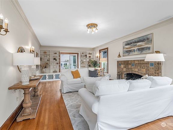 1st time on market in 55yrs. N Admiral gem w/vistas of Sound & Mtns. Inviting foyer & grand living rm boast high ceilings, masterful millwork, period frplc & hardwood flrs. Open flr plan leads to formal dining rm, heart of lively conversations & memorable meals. Spacious kit w/gas range, granite counters, abundant cabinetry, kit eating space & deck to dine alfresco while enjoying garden oasis. Upstairs are 4 lrg bdrms, full bath & balcony w/French drs. Grand top flr w/lots of windows that frame expansive views. Cozy up by the gas frplc as you watch the sunsets paint the sky in brilliant hues. French drs lead to 2nd balcony for relaxing & enjoying breathtaking surroundings. Lwr lvl w/laundry rm, workshop& endless possibilities. 2-car garage.