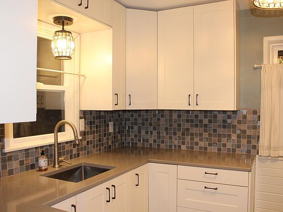 Darling starter or retirement home. Remodeled and move in mint ready! Two spacious bedrooms with closet, ceiling fans and corner windows. Remodeled kitchen features white cabinetry with soft close, quartz countertops and glass backsplash. Includes all kitchen appliances plus washer and dryer. Vinyl windows, large picture window in living room, all new flooring, 2024 FA furnace and central air and 2024 hot water heater. This property is located on an oversized corner lot with alley access plus 2 stall detached garage with 2022 roof, and concrete side walls which is attached to 13 x 13 workshop that you could add a door to the alley side and expand your garage space. Just a few blocks off Hwy 22 for easy commute to Hutchinson.