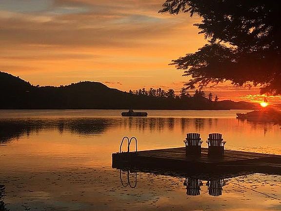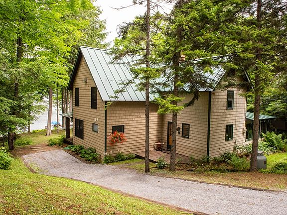 Own a piece of Big Moose Lake history with this impressively maintained year round one of a kind property. Plenty of room for guests with 5 bedrooms, 2 full bath, and detached 2 car garage with spacious bonus room above it. The gently sloped lawn leads to 100+ feet of waterfront with a 32' X 16' dock for great swimming and boating. Adirondack features include showpiece stone fireplace and log porch pillars. It will be easy to relax on the large lakeside porch at this charming property with a large fire pit area facing the lack along with a dock.