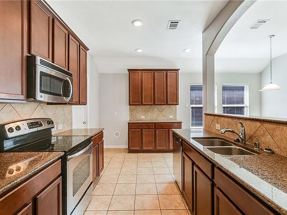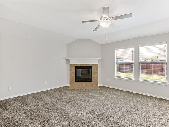 Built in 2012, this Fort Worth open-layout home offers granite kitchen countertops and a fireplace. Upgraded features include new carpet and fresh interior paint. A playground is part of the HOA. Home comes with a 30-day buyback guarantee. Terms and conditions apply.