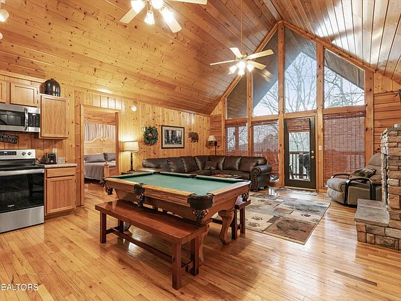 Welcome to your cozy retreat nestled in the serene confines of Hidden Springs Resort, just a 5 minutes away from Dollywood! This charming one-level cabin has two bedrooms, each with its own attached full bathroom for utmost convenience and privacy. Step inside to discover the inviting atmosphere of the living room, where a magnificent double-sided fireplace stands as the focal point, providing warmth and charm to both the living space and one of the bedrooms. Enjoy the fully equipped kitchen, featuring modern stainless steel appliances installed in 2023, ensuring both style and functionality. Outside, the resort offers a community pool, perfect for relaxing after a day of adventure in the Smoky Mountains. Whether you're seeking an exciting getaway as a second home or an income-producing investment, this cabin offers the perfect blend of comfort, convenience, and the joy of being in the Great Smokey Mountains.
