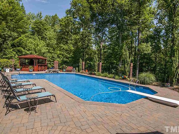North Raleigh Resort Living! Luxury Custom designed home on private 4.99 ac cul de sac! Distinctive detailing and upscale finishes . Spiral staircase, Brazilian Cherry floors, coffered ceilings, 1st flr. master, chef's kitchen w. huge island, Charles Custom Cabinetry & built ins, Outdoor living: Salt Water Pool, Spa, Stone Kitchen, Covered Patio, Screened Porch! Paver decking! Gorgeous Landscaping! 5 fireplaces, Natural gas generator, No HOA dues! H S A Warranty! Lovingly maintained See Agent Remarks
